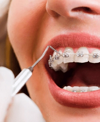 These braces blend with your natural tooth color, making them less noticeable while providing the same effective results as traditional metal braces. Perfect for patients who want effective treatment with a more aesthetic appearance.